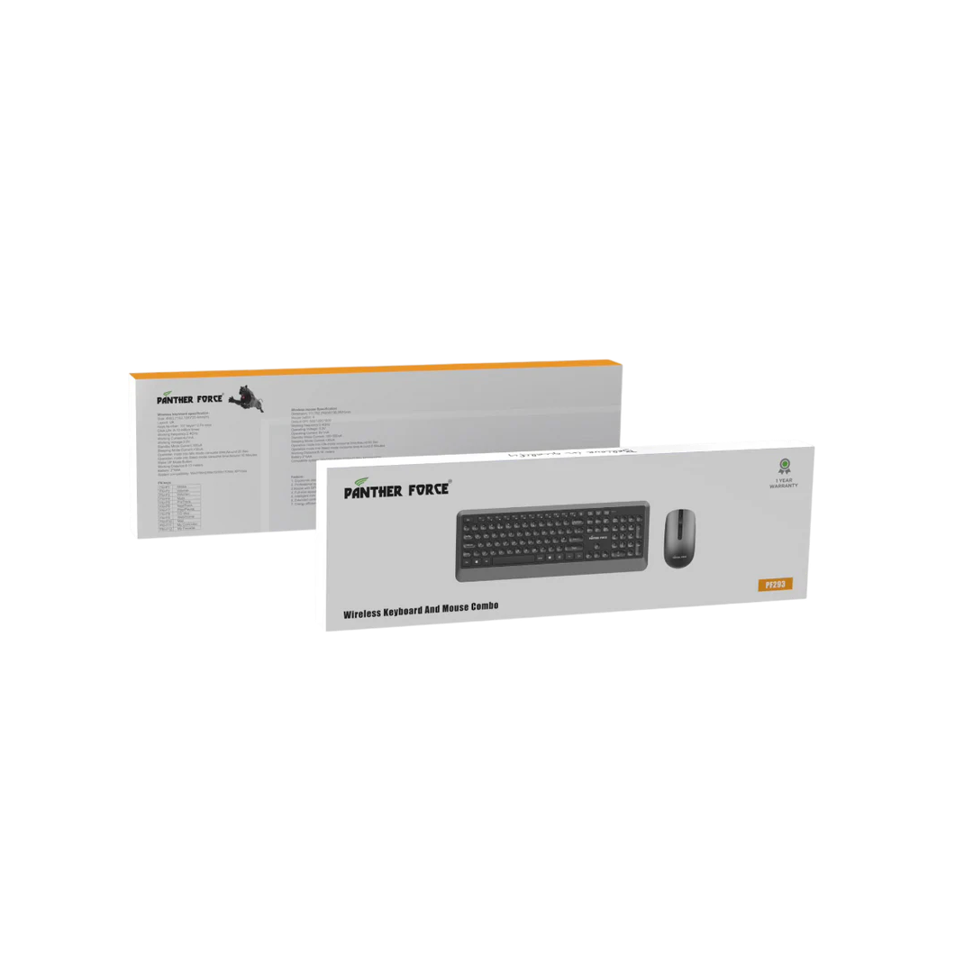 Elegant and Modern Design: The Panther Force Wireless Keyboard & Mouse Combo boasts a sleek and contemporary design that enhances the aesthetic of any desk setup. Its minimalistic style combines functionality with visual appeal.